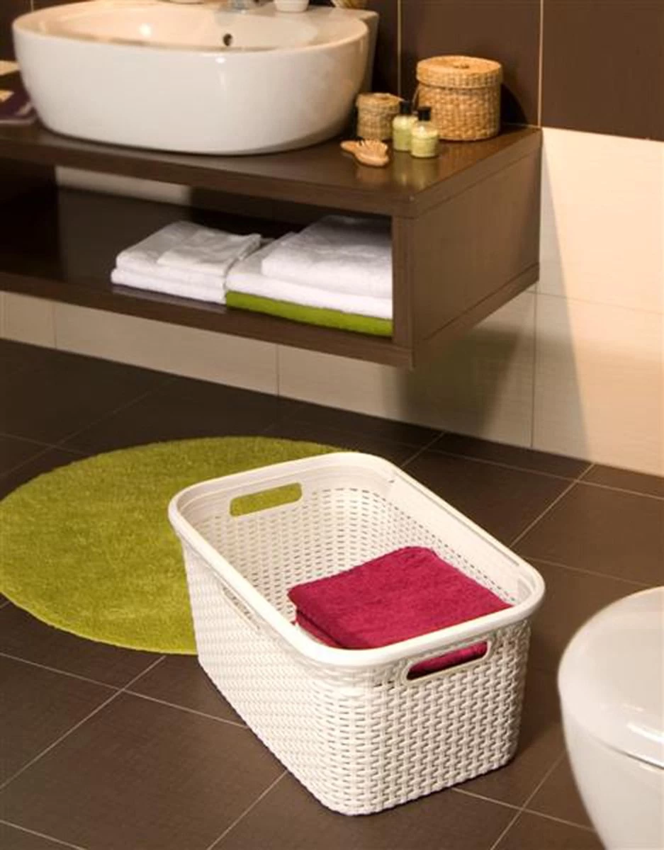 Deze Curver Style Heupwasmand 45L is qua uitstraling en look identiek aan de wasboxen in de maten 40L en 60L. Door de techniek van het open vlechtwerk is de beluchting van het wasgoed optimaal. De wasmand is voorzien van drie greepuitsparingen, het voordeel hiervan is dat u de mand ook op uw heup kunt dragen en slechts één hand nodig heeft zodat u uw ander hand vrij heeft. De mand is eenvoudig te reinigen. Daarnaast is de wasmand gemaakt van minstens 70% gerecycled materiaal.