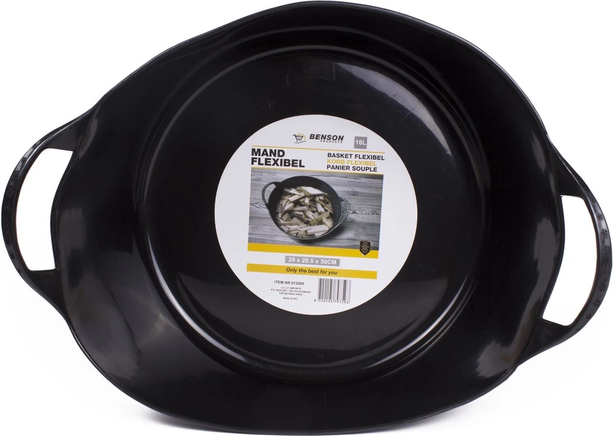 Een sterke flexibele mand die een inhoud heeft van 16 liter. De mand is gemaakt van kunststof en in een mooie matte zwarte kleur, met 2 stevige hengsels is deze mand eenvoudig mee te nemen. Geschikt voor vele doeleinden; zoals het opbergen van spullen, werken in de tuin en als wasmand.