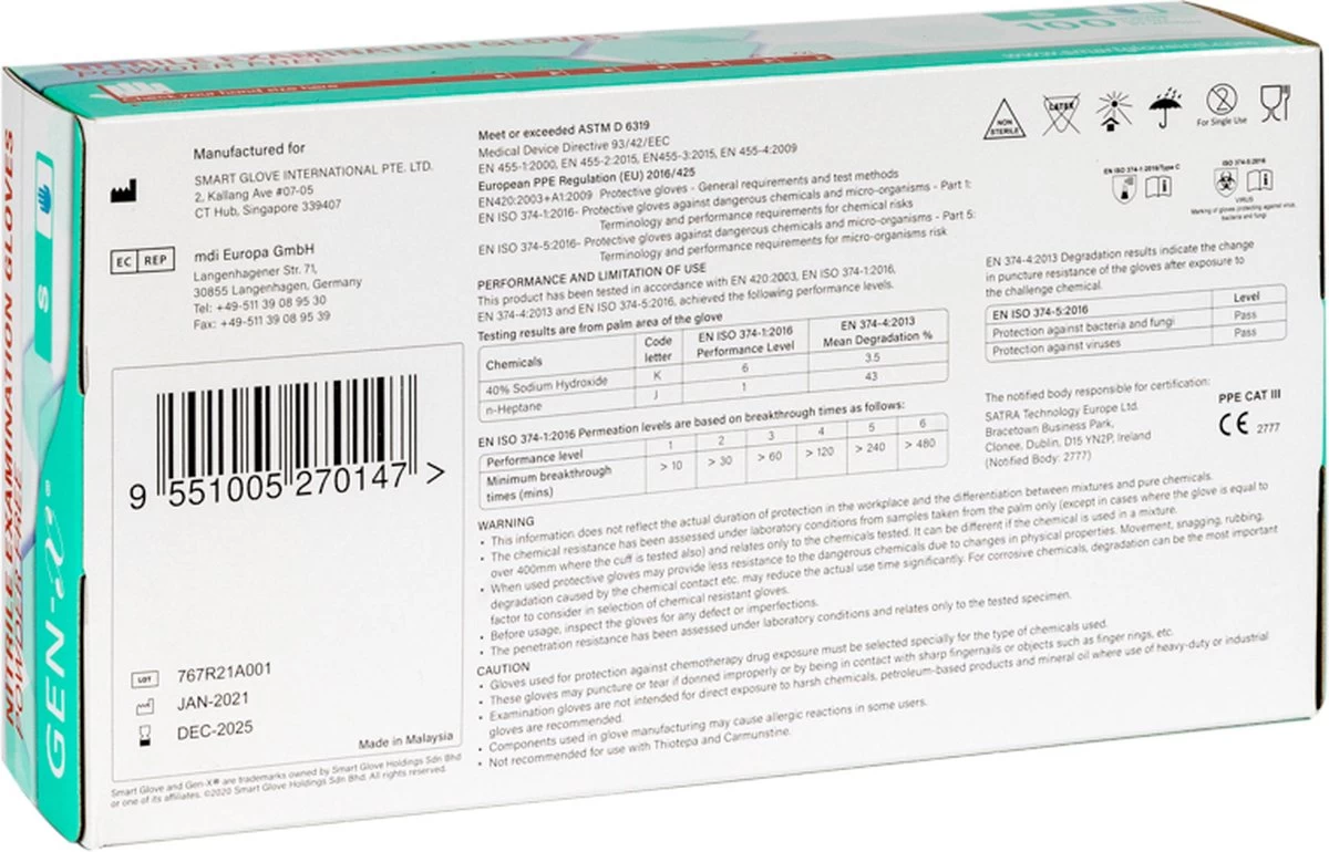 Gen-X Nitril handschoenen specificaties & productie- en veiligheidsnormen: