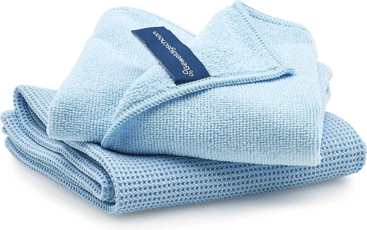 De hoogwaardige Geweldigschoon Raamdoekenset bestaat uit 2 speciaal geweven microvezeldoeken: de schoonmaakdoek in het handige 40 x 40 cm formaat en de bekende M-formaat droogdoek van 60 x 45 cm. Beide doeken zijn bijzonder slijtvast en staan bij correct gebruik garant voor jarenlang plezier.