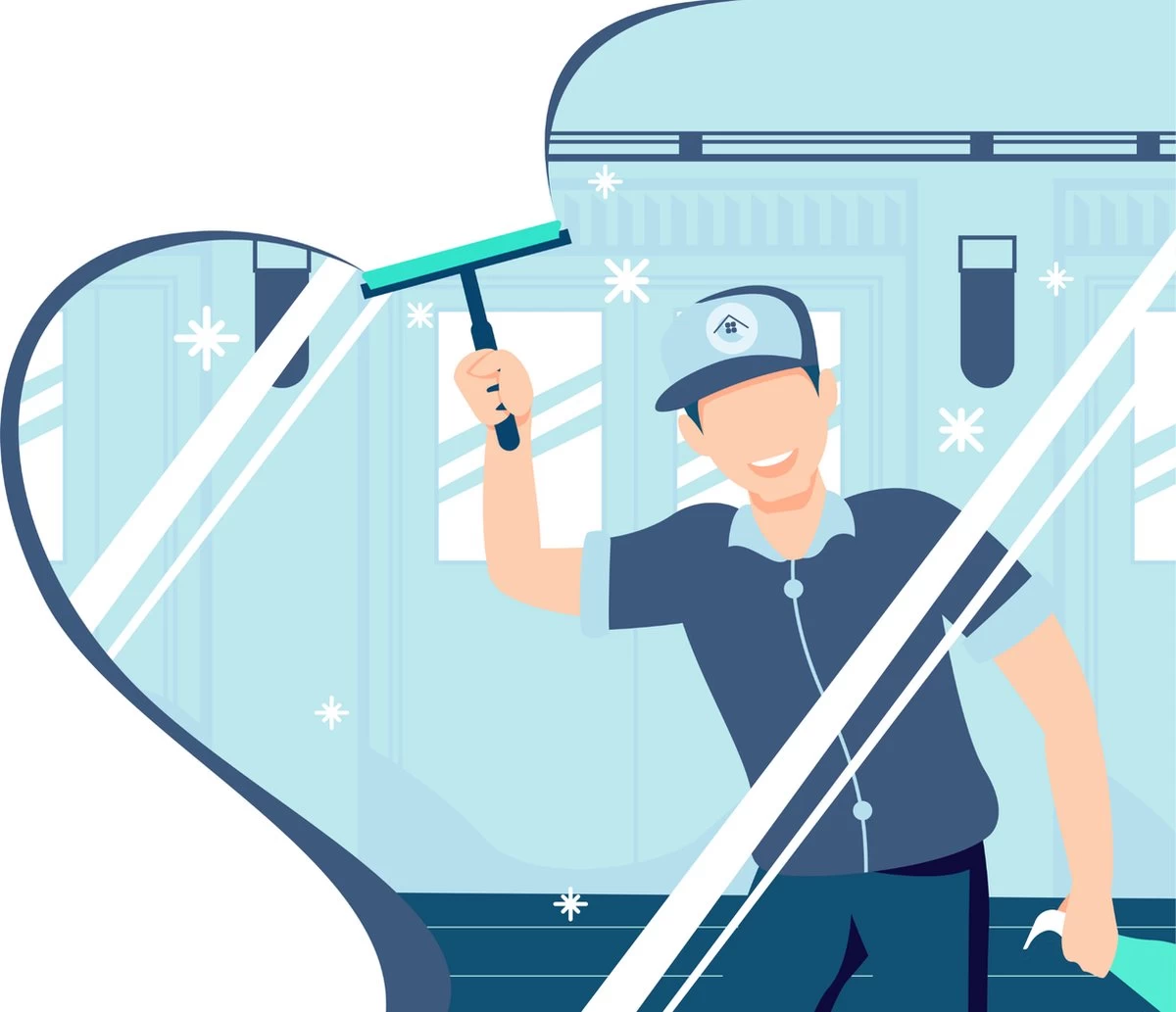 6. Plaats de wisser naar binnen en begin beide kanten te reinigen