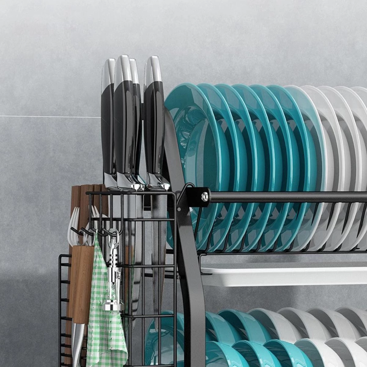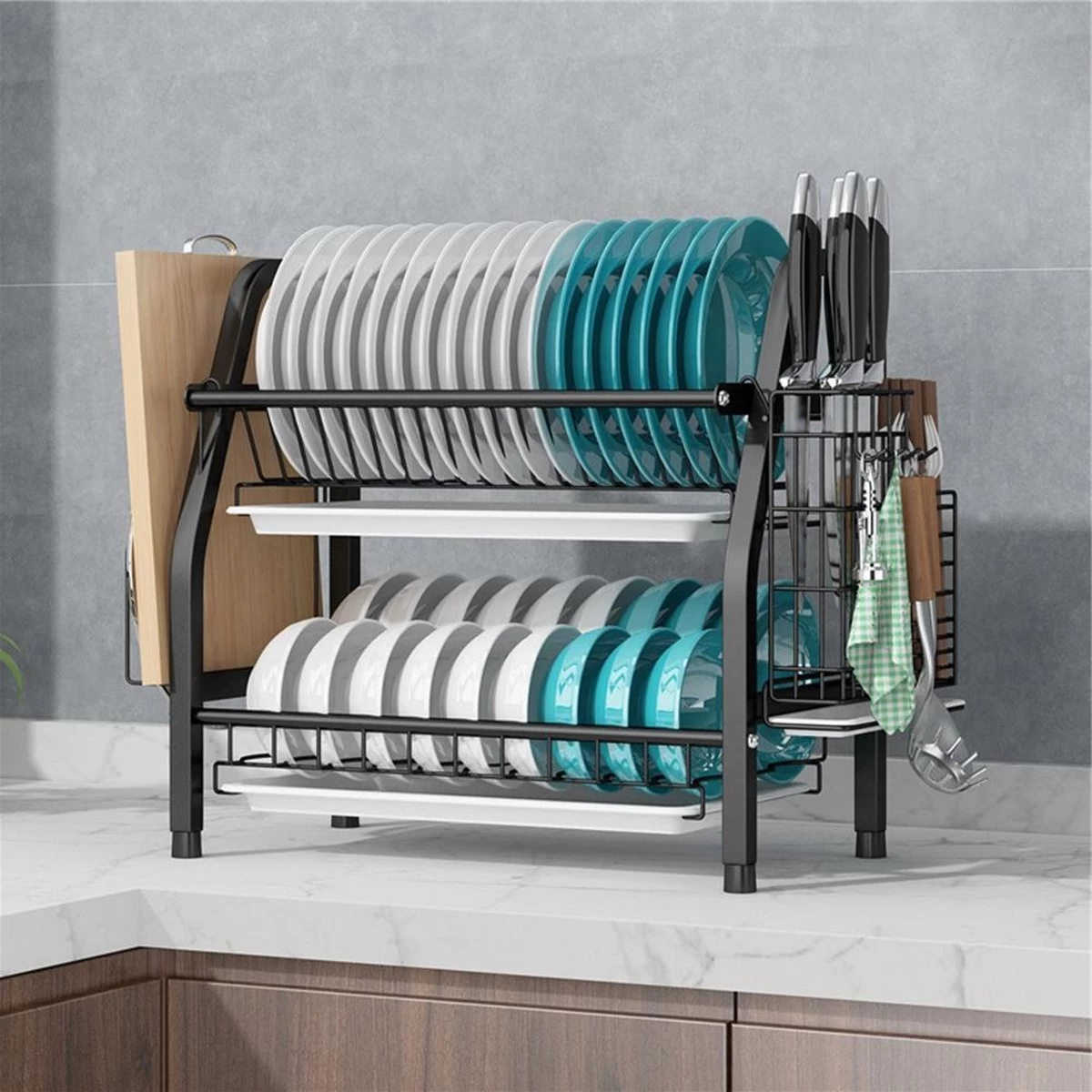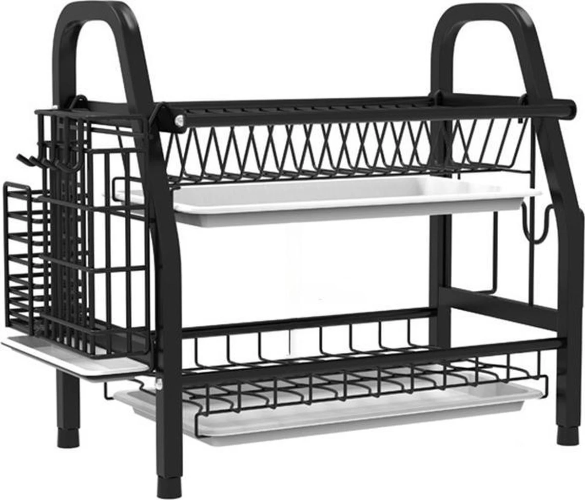 Met behulp van dit twee-laagse afdruiprek kun je altijd al je afwas kwijt! Het rek biedt de mogelijkheid om borden, bakjes, glazen en ander keukengerei uit te laten lekken. Om een waterballet te voorkomen zitten er losse lekbakken bij die al het water opvangen!