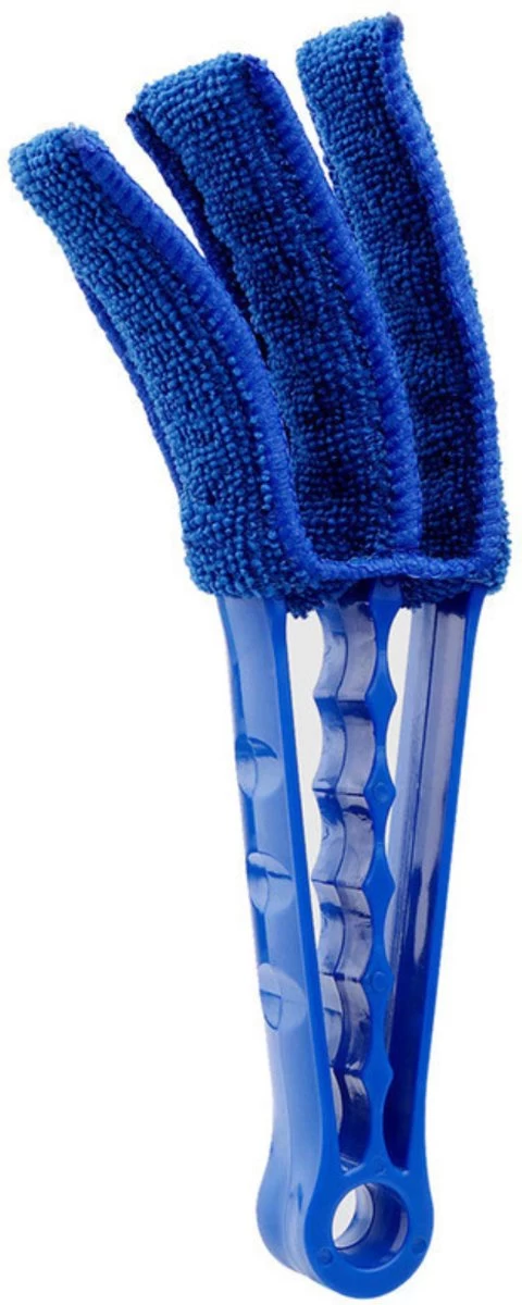 Deze schoonmaak gadget bevat drie stoffers waarmee het schoonmaken van jaloezieën een fluitje van een cent wordt. Klem de drie stoffers om de lamellen, de jaloezie of de airco heen en haal vervolgens de borstel heen en weer.