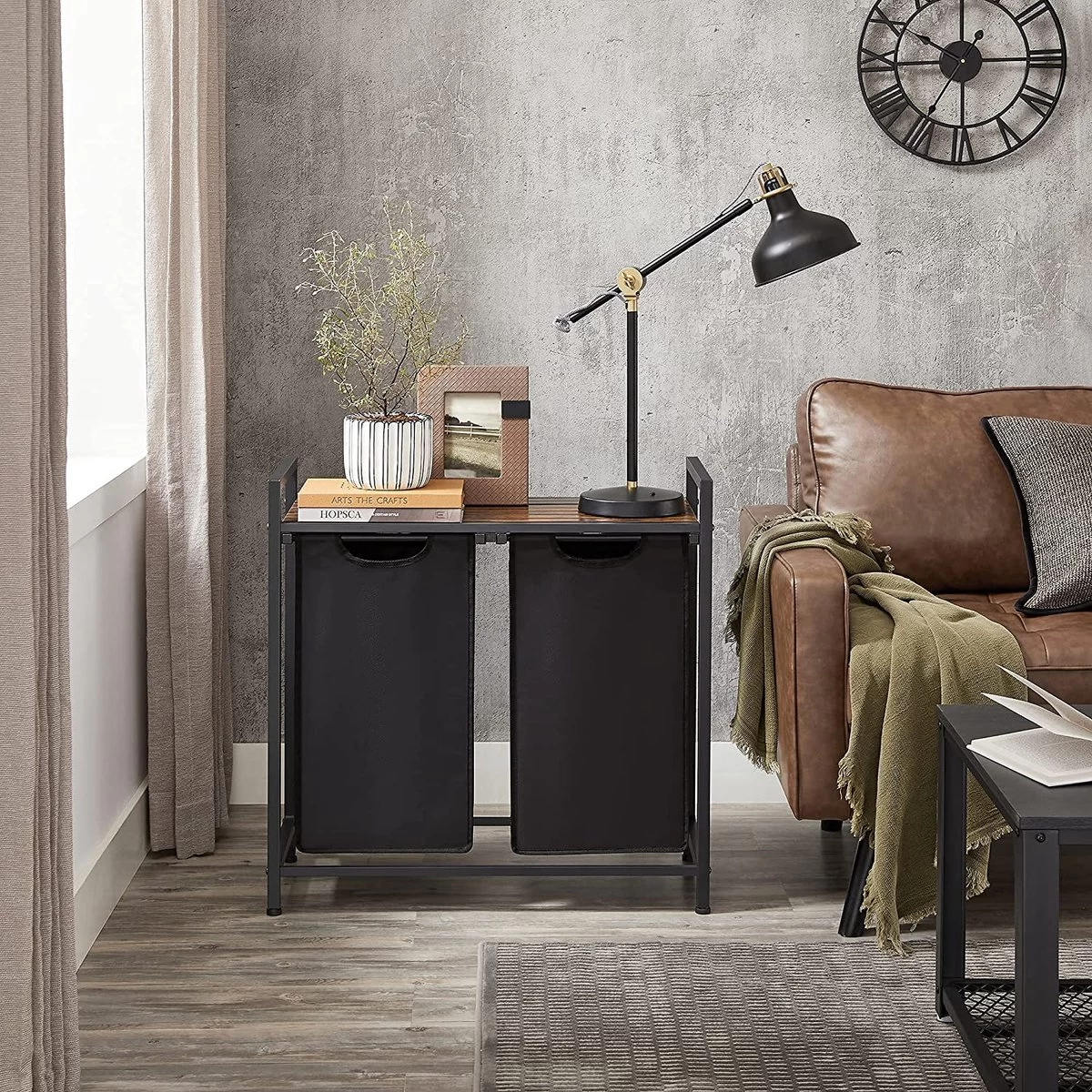 Een mooie en praktische wassorteerder nodig? Deze was sorteerder biedt een schat aan opbergmogelijkheden. De twee zakken van sterke Oxford stof kan je gebruiken om de was op kleur te sorteren. Op de bovenste plank kan je wasmiddel en wasverzachter plaatsen.