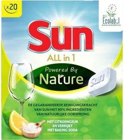 SUNĀ® Sun All-In-1 Powered By Nature Eco Vaatwastabletten – 4 X 20 Tabletten – Voordeelverpakking
