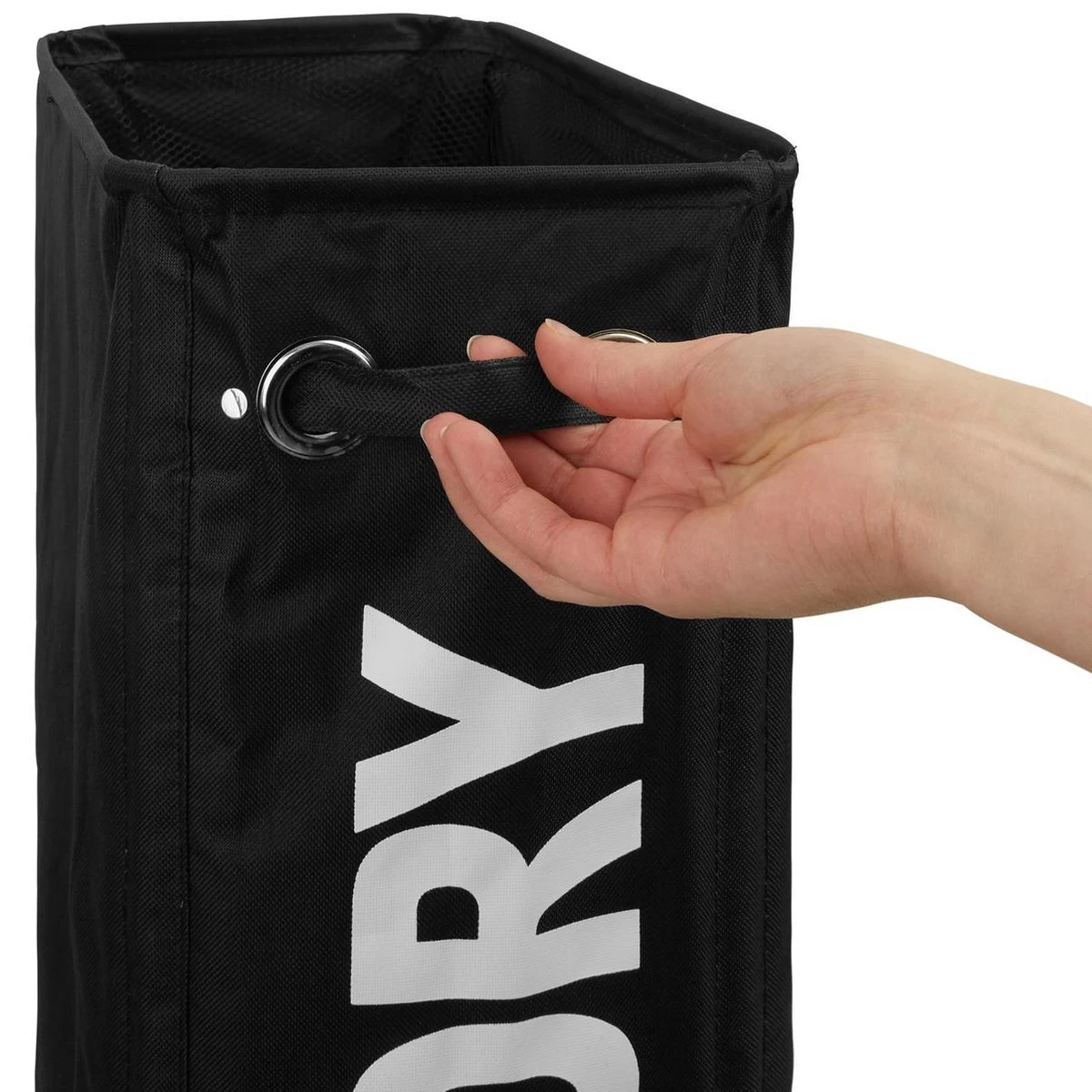 Deze compacte wasmand legt moderne accenten in uw badkamer. Het mooi gevormde design met de trendy tekst opwaardeert elke ruimte. Met haar smalle vorm kan ze ook in een kleine ruimte perfect gebruikt worden. Via de handgreep aan de voorzijde kan de lichtlopende mand met zijn vier wielen moeiteloos gesleept worden. Als ze niet gebruikt wordt, kan de korf tot een handig formaat samengeplooid worden. Tover ongebruikte niches en hoeken om tot een praktische opbergruimte met de stabiele wasmand van TecTake.
