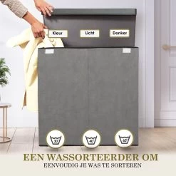 Songmics Wassorteerder – Wasmand – Wasbox – Waswagen – Was Sorteren – Wascollector – Zwart